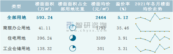 根據(jù)國信房地產(chǎn)信息網(wǎng)數(shù)據(jù)統(tǒng)計可知:2021年8月哈爾濱市全部用地出讓地面均價為2101元/㎡,其中住宅用地出讓地面均價最高(4815元/㎡),全部用地成交地面均價為2435元/㎡,其中住宅用地成交地面均價為4628元/㎡,高于商服辦公用地成交地面均價;2021年1-8月哈爾濱市住宅用地樓面面積占其全部用地比重最多,為66.79%,溢價率為3.91%。