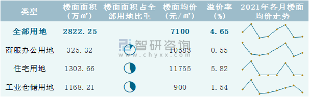 根據(jù)國信房地產(chǎn)信息網(wǎng)數(shù)據(jù)統(tǒng)計可知:2021年8月上海市全部用地出讓地面均價為4149元/㎡,其中商服辦公用地出讓地面均價最高(15008元/㎡),全部用地成交地面均價為4320元/㎡;2021年1-8月上海市住宅用地樓面面積占其全部用地比重最多,為46.19%,溢價率為5.82%。