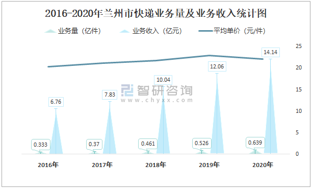 2016-2020年蘭州市快遞業務量及業務收入統計圖
