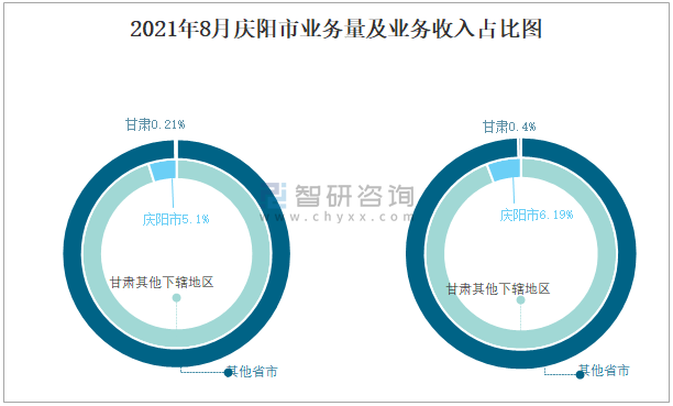 2021年8月平涼市業務量及業務收入占比圖