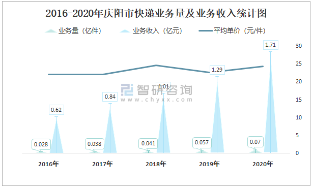 2016-2020年平涼市快遞業務量及業務收入統計圖
