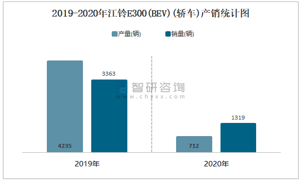 2019-2020年江鈴E300(BEV)(轎車)產(chǎn)銷統(tǒng)計(jì)圖