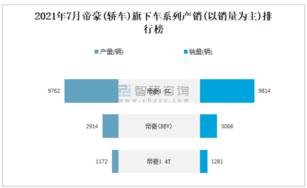 2021年7月帝豪(轎車)旗下車系列產銷(以銷量為主)排行榜