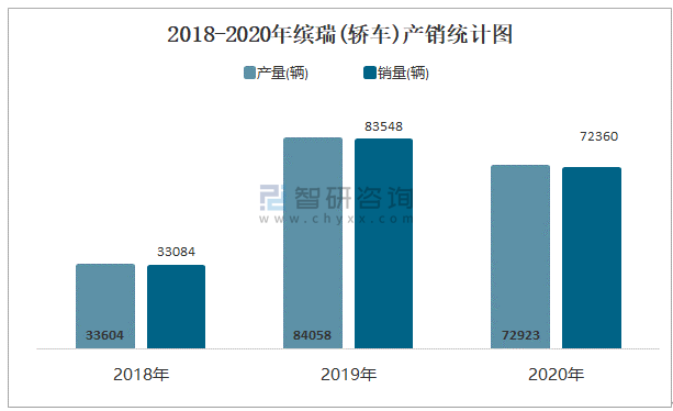 2018-2020年繽瑞(轎車)產(chǎn)銷統(tǒng)計(jì)圖