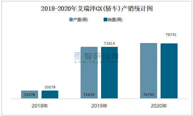 2018-2020年艾瑞澤GX(轎車)產(chǎn)銷統(tǒng)計(jì)圖