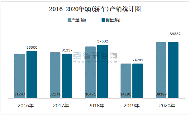 2016-2020年QQ(轎車)產(chǎn)銷統(tǒng)計(jì)圖