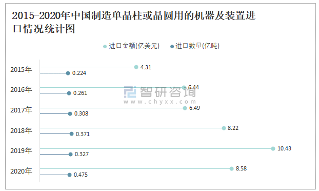 2015-2020年中國制造單晶柱或晶圓用的機器及裝置進口情況統計圖