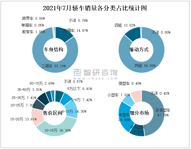 2021年7月轎車銷量各分類占比統計圖