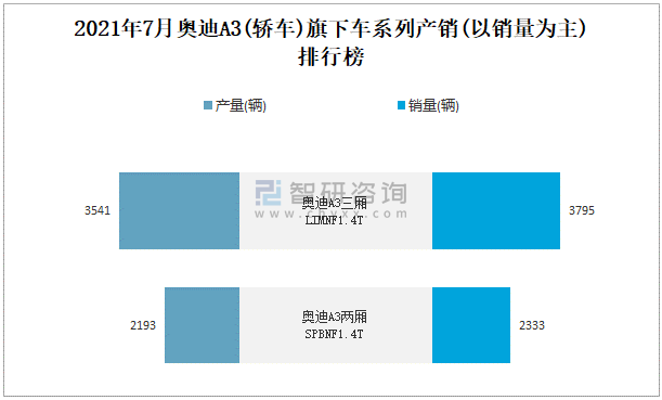 2021年7月奧迪A3(轎車)旗下車系列產銷(以銷量為主)排行榜