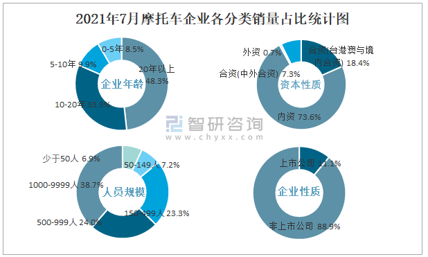 2021年7月摩托車企業各分類銷量占比統計圖