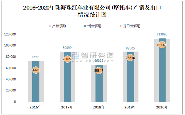 2016-2020年珠海珠江車業(yè)有限公司產(chǎn)銷及出口情況統(tǒng)計圖