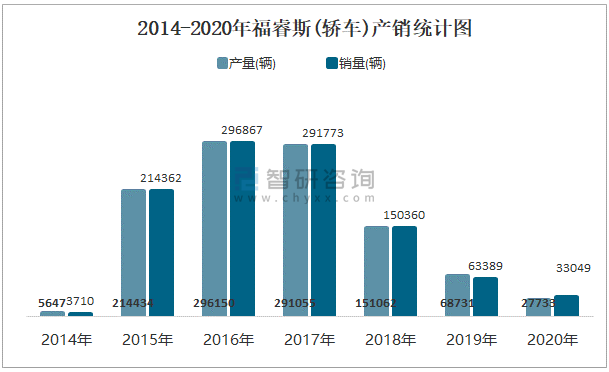 2014-2020年福睿斯(轎車)產(chǎn)銷統(tǒng)計圖