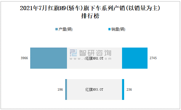 2021年7月紅旗H9(轎車)旗下車系列產(chǎn)銷(以銷量為主)排行榜