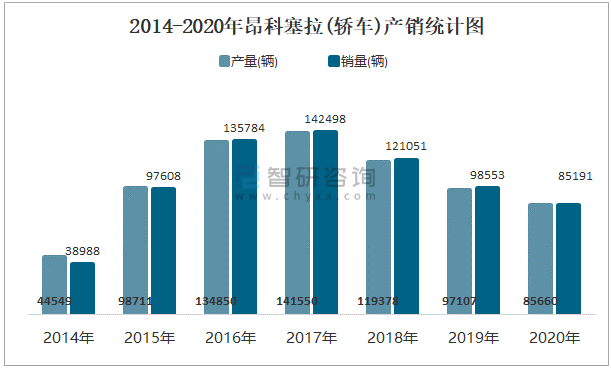 2014-2020年昂科塞拉(轎車)產(chǎn)銷統(tǒng)計(jì)圖
