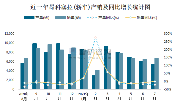根據(jù)中國(guó)汽車工業(yè)協(xié)會(huì)數(shù)據(jù)可知:2021年7月昂科塞拉(轎車)產(chǎn)量為5420輛,同比下降20.4%,銷量為6705輛,同比增長(zhǎng)1.2%,當(dāng)月產(chǎn)銷率為123.71%;2021年1-7月昂科塞拉(轎車)累計(jì)產(chǎn)量為47329輛,同比增長(zhǎng)5.8%,累計(jì)銷量為47893輛,同比增長(zhǎng)12.7%,累計(jì)產(chǎn)銷率為101.19%;2014-2020年昂科塞拉(轎車)產(chǎn)銷量均在2017年達(dá)到最高值,此后逐年遞減,且近7年總產(chǎn)量大于總銷量,積壓了庫(kù)存2132輛。