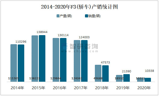 2014-2020年F3(轎車)產(chǎn)銷統(tǒng)計(jì)圖