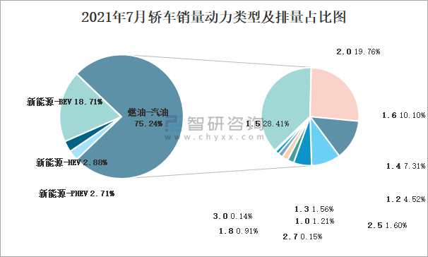 2021年7月轎車銷量動(dòng)力類型及排量占比圖