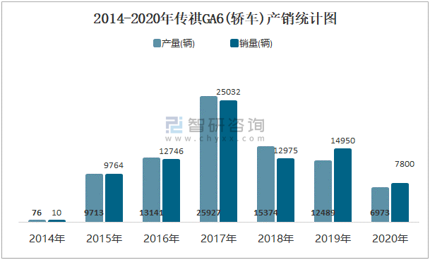 2014-2020年傳祺GA6(轎車(chē))產(chǎn)銷(xiāo)統(tǒng)計(jì)圖