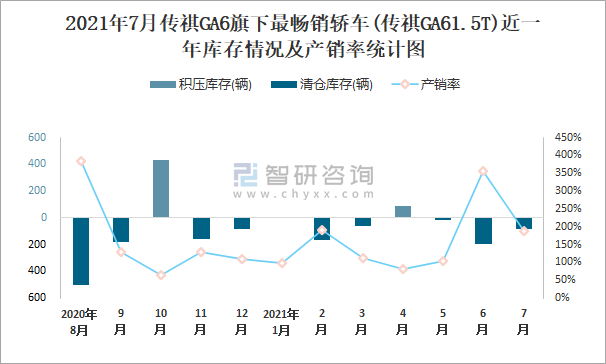 根據(jù)中國(guó)汽車(chē)工業(yè)協(xié)會(huì)數(shù)據(jù)統(tǒng)計(jì)可知:2021年7月傳祺GA6(轎車(chē))旗下只有1款傳祺GA61.5T轎車(chē)在銷(xiāo)售;近一年傳祺GA61.5T共清倉(cāng)庫(kù)存921輛,其產(chǎn)銷(xiāo)率存在一定幅度波動(dòng),2020年8月產(chǎn)銷(xiāo)率最高(383.15%),清倉(cāng)庫(kù)存504輛,2020年10月產(chǎn)銷(xiāo)率偏低(65.9%),積壓庫(kù)存431輛。