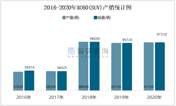 2016-2020年XC60(SUV)產銷統計圖