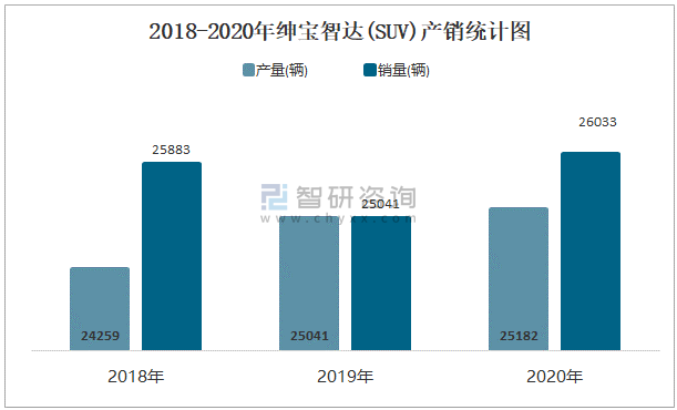 2018-2020年紳寶智達(SUV)產銷統計圖