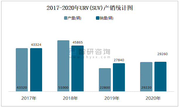 2017-2020年URV(SUV)產銷統計圖