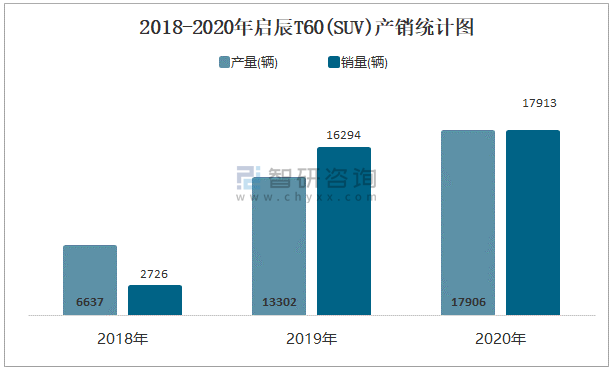 2018-2020年啟辰T60(SUV)產銷統(tǒng)計圖