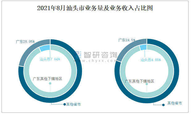 2021年8月汕頭市業務量及業務收入占比圖