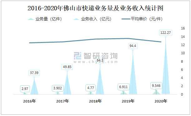 2016-2020年佛山市快遞業(yè)務(wù)量及業(yè)務(wù)收入統(tǒng)計(jì)圖