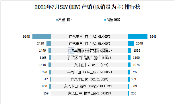 2021年7月SUV(HEV)產銷(以銷量為主)排行榜