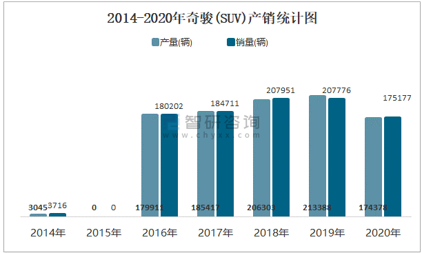 2014-2020年奇駿(SUV)產(chǎn)銷統(tǒng)計圖