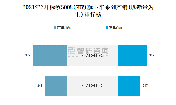 2021年7月標致5008(SUV)旗下車系列產銷(以銷量為主)排行榜
