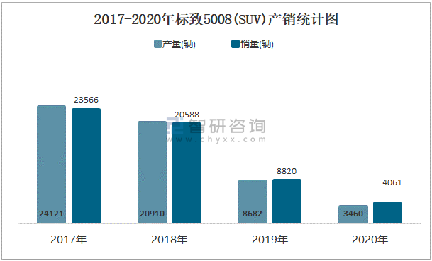 2017-2020年標致5008(SUV)產銷統計圖