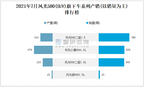 2021年7月風光580(SUV)旗下車系列產銷(以銷量為主)排行榜