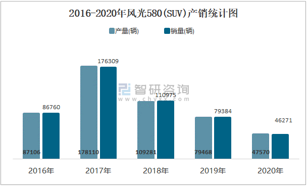 2016-2020年風光580(SUV)產銷統計圖