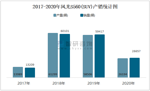 2017-2020年風(fēng)光S560(SUV)產(chǎn)銷(xiāo)統(tǒng)計(jì)圖