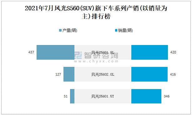 2021年7月風(fēng)光S560(SUV)旗下車(chē)系列產(chǎn)銷(xiāo)(以銷(xiāo)量為主)排行榜