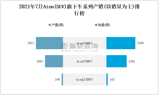 2021年7月AION(SUV)旗下車系列產銷(以銷量為主)排行榜