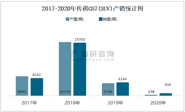 2017-2020年傳祺GS7(SUV)產銷統計圖