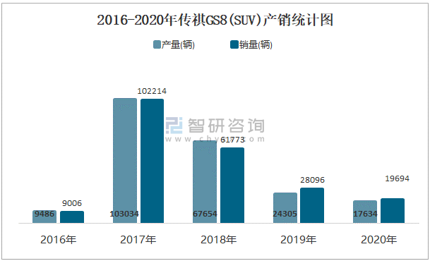 2016-2020年傳祺GS8(SUV)產(chǎn)銷統(tǒng)計(jì)圖