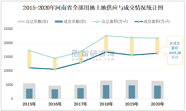 2015-2020年河南省全部用地土地供應與成交情況統(tǒng)計圖
