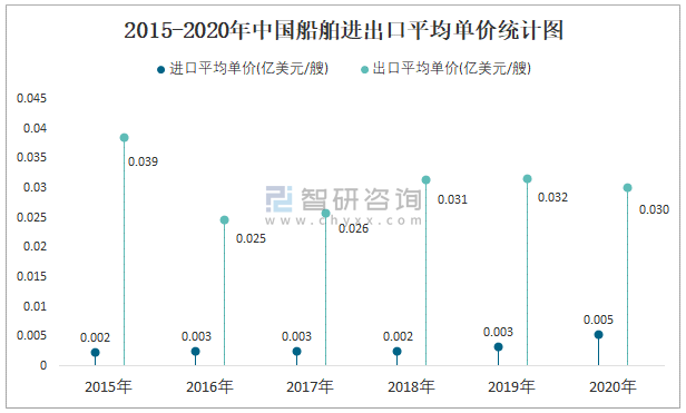 根據中國海關數據顯示:2015-2020中國船舶進口數量總體低于出口數量,進口數量在2018年達到最大值,此后逐年遞減,出口數量在2016年達到最大值,此后逐年遞減;2015-2020中國船舶進出口平均單價存在明顯幅度的波動。