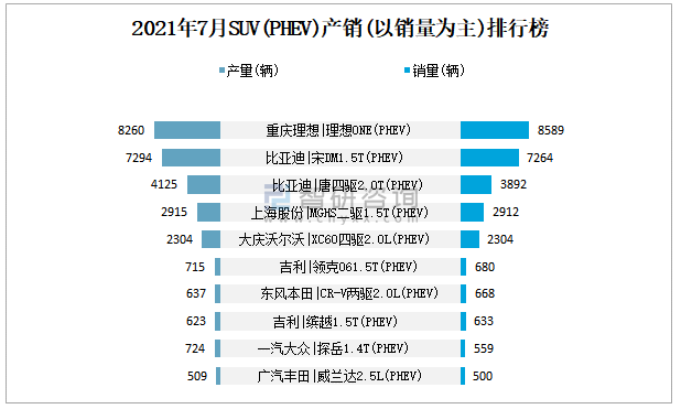 2021年7月SUV(BEV)產(chǎn)銷(以銷量為主)排行榜