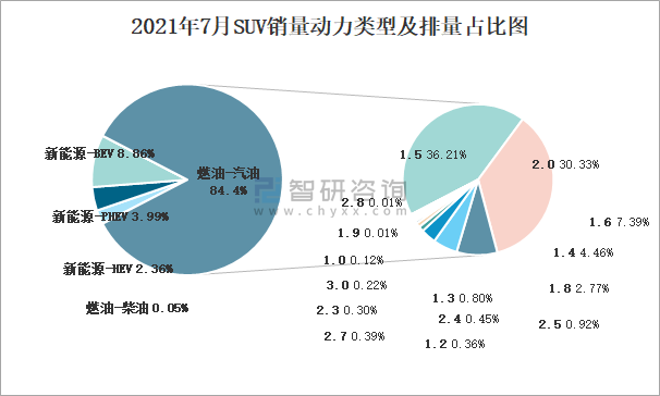 2021年7月SUV銷量動力類型及排量占比圖