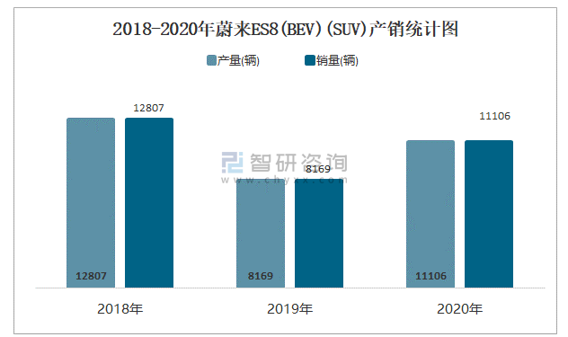 2018-2020年蔚來ES8(BEV)(SUV)產(chǎn)銷統(tǒng)計圖