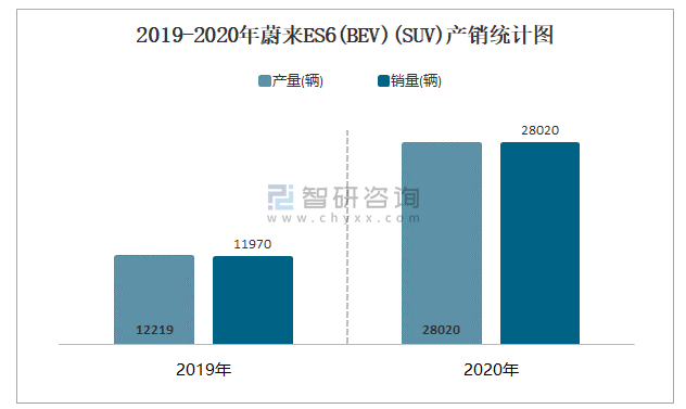 2019-2020年蔚來ES6(BEV)(SUV)產(chǎn)銷統(tǒng)計圖