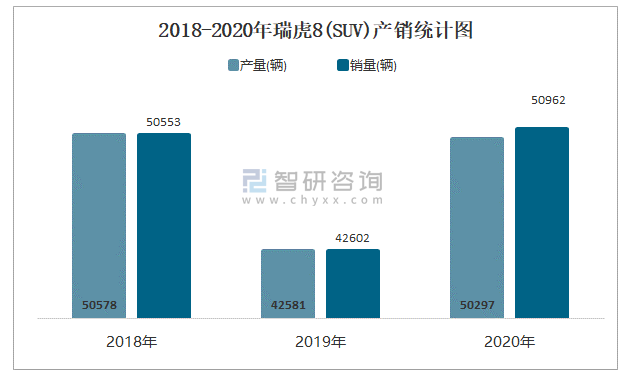 2018-2020年瑞虎8(SUV)產銷統計圖