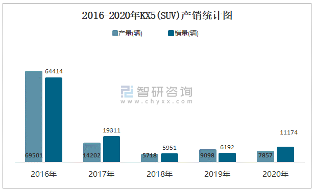 2016-2020年KX5(SUV)產銷統計圖