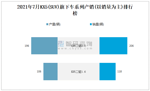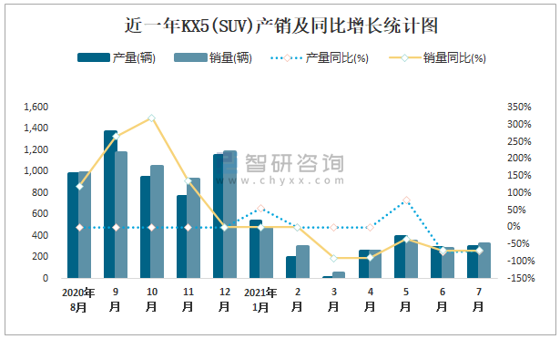 2021年7月KX5(SUV)產銷量分別為302輛和324輛 當月產銷率為107.28%