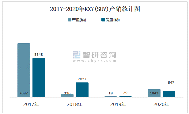 2017-2020年KX7(SUV)產(chǎn)銷統(tǒng)計(jì)圖